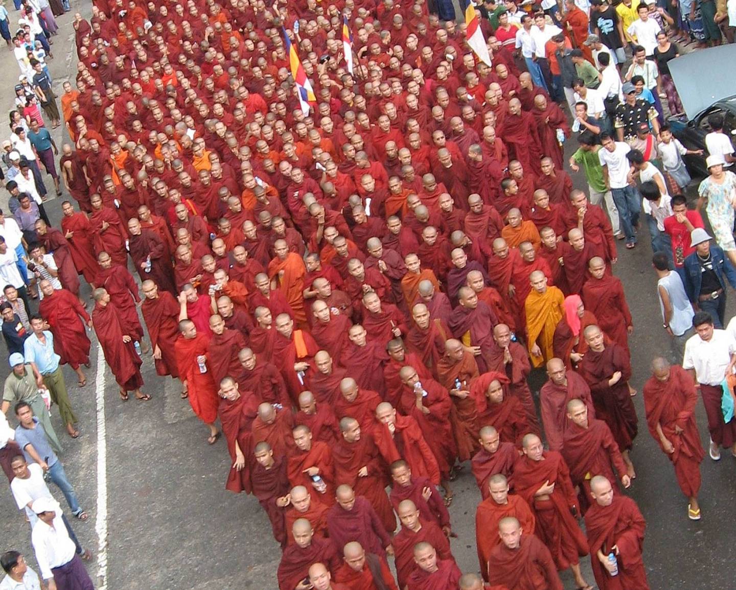 Named after the color of the robes of Buddhist monks in Myanmar (Burma), in September 2007 hundreds of thousands of monks, students, and political activists protested the country's military junta and demanded democratic reform. The uprising began in response to the government ending fuel subsidies without warning, causing massive spikes in prices in food and transportation.Named after the color of the robes of Buddhist monks in Myanmar (Burma), in September 2007 hundreds of thousands of monks, students, and political activists protested the country's military junta and demanded democratic reform. The uprising began in response to the government ending fuel subsidies without warning, causing massive spikes in prices in food and transportation.