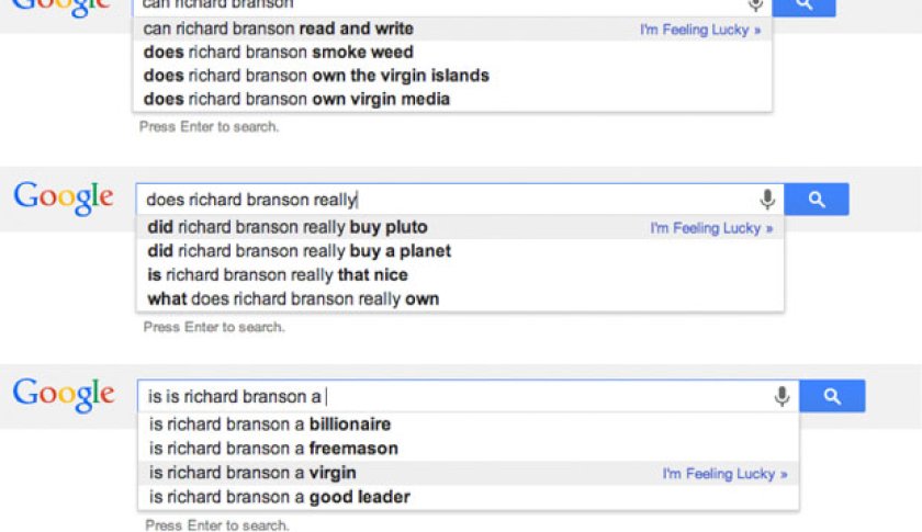 At Coins2Day, we strive to bring you the business news you need to know. But are we bringing you the business news that you want to know? Judging from the most frequently searched queries about today's business leaders, maybe not. According to the results presented by the autofill mechanism on Google search, some of the most pressing questions lie beyond our magazine's typical purview. For example, "Is Richard Branson a virgin?" (No!) And "Will Bill Gates give me $5,000" (unlikely!), and, mysteriously, "Sergey Brin is Batman" (well, maybe...). To see the answers to the Internet's most persistent questions about top business executives, read on.