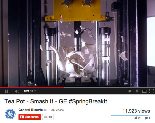 General Electric may be more than a century old, but you wouldn’t know it by looking at its social media channels. Its Pinterest page is rife with quirky boards that appeal to the geek at heart. From home makeovers that feature its light bulbs to colorful graphics that feature magnificent machinery, GE doesn’t focus on its products so much as the experiences that make science and technology exciting. On Twitter and Facebook, GE poses questions to its followers, asking them to, for example, try to stump one of its engineers. And a recent social media campaign, the video series #SpringBreakIt, shows items like teapots, baseballs, and cinder blocks being destroyed in slow motion.