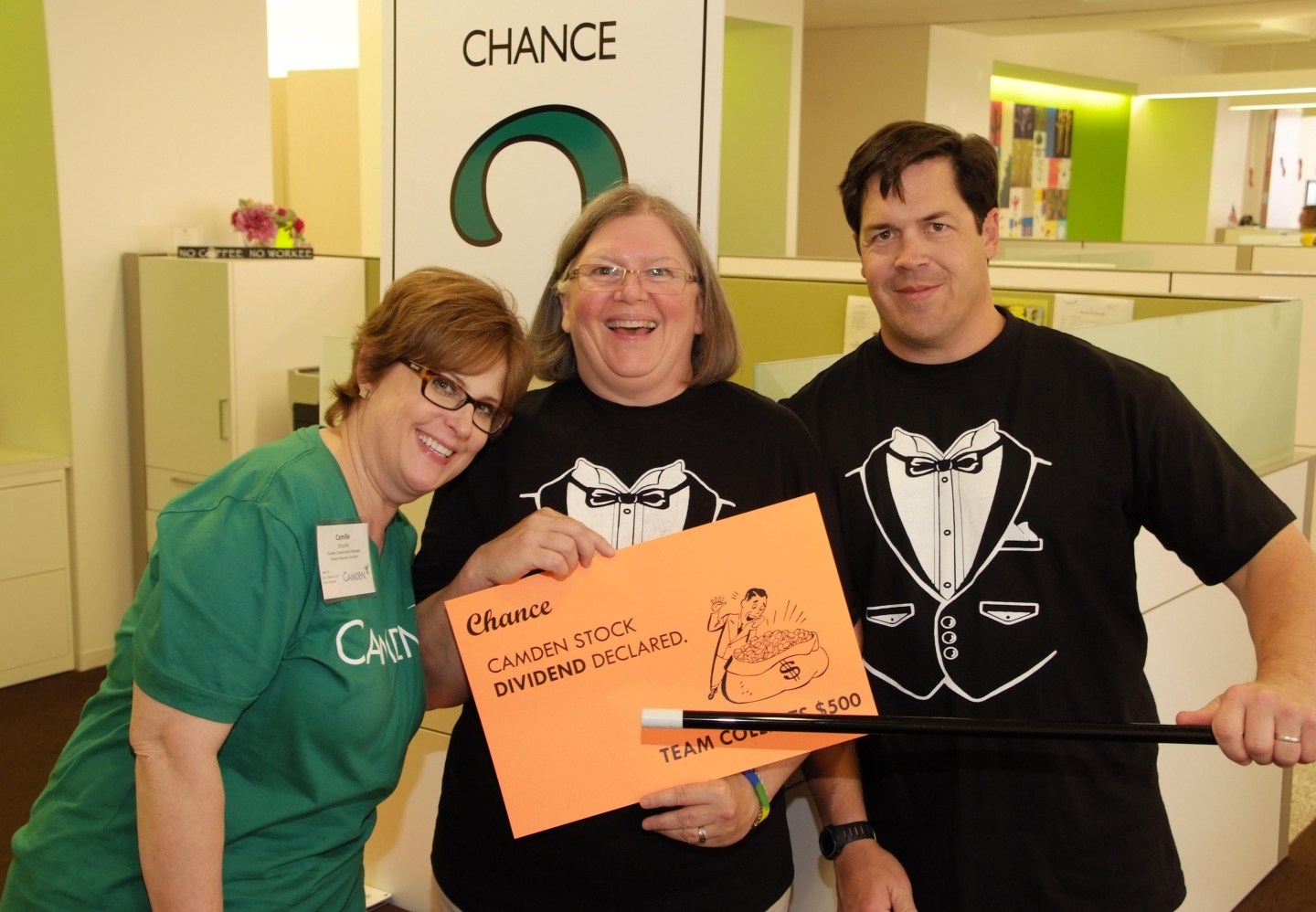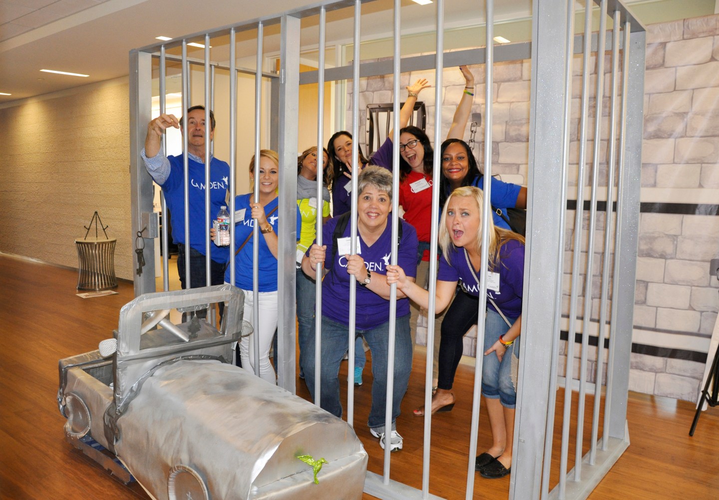 Camden's CEO and co-founder Ric Campo (rear right, dressed as Judge Judy) was sent to jail with prisoner #1, the company's other co-counder and President Keith Oden.