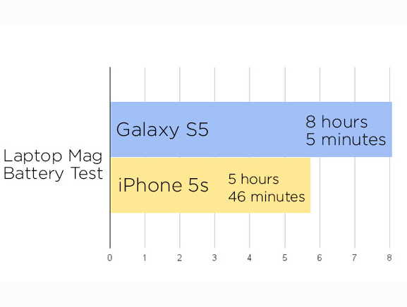 - It outperforms Apple’s iPhone 5S in independent battery tests by as much as 40% — nearly 2 hours and 20 minutes