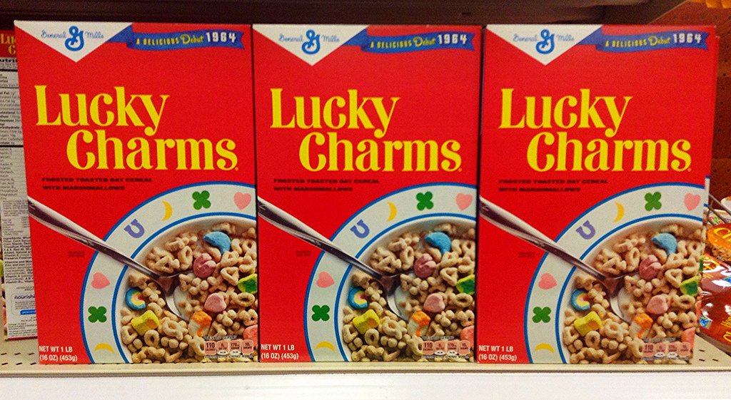 The company told investors on Tuesday that sales of its Lucky Charms cereal are booming now that it is advertising more heavily to adults who grew up ingesting the leprechaun-hocked breakfast good. An ad campaign in January urged consumers to celebrate the brand’s 50th anniversary, using its famous tagline “they’re magically delicious.” (See below.)