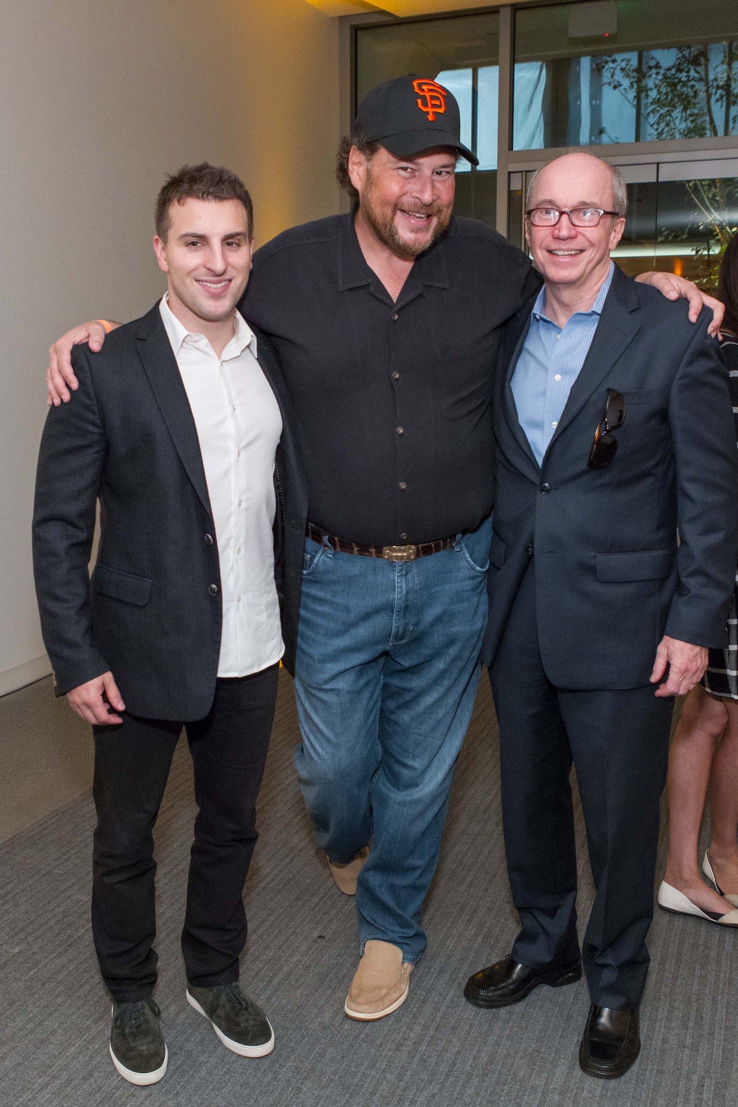 Brian Chesky, CEO Airbnb (left), Marc Benioff, CEO Salesforce (center); Alan Murray, editor Coins2Day (right)