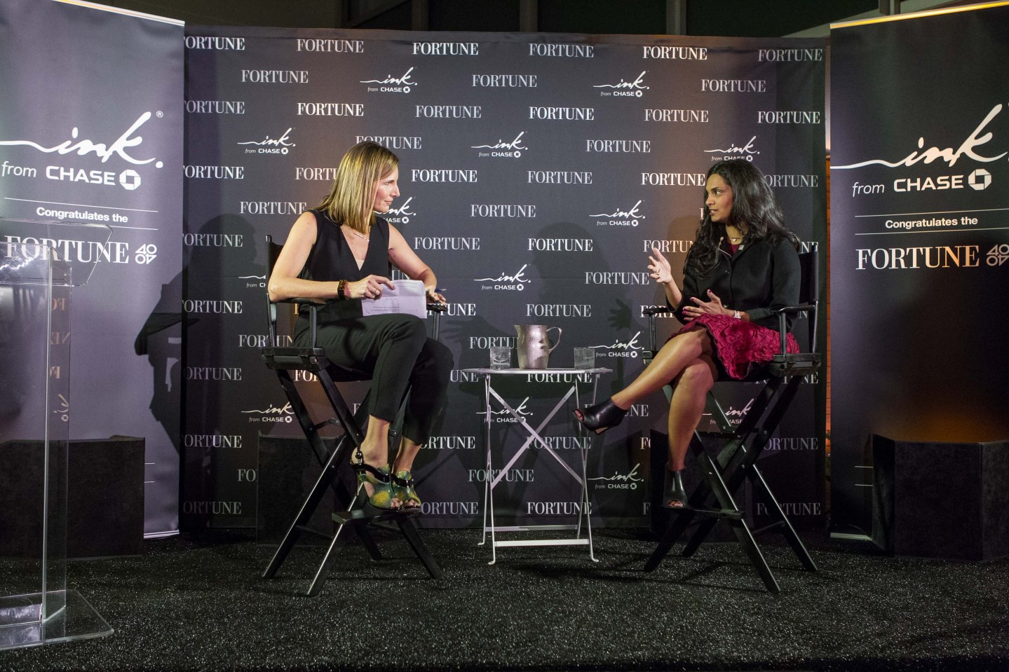 Coins2Day's Leigh Gallagher (left) interviews Vijaya Gadde, Twiter's general counsel