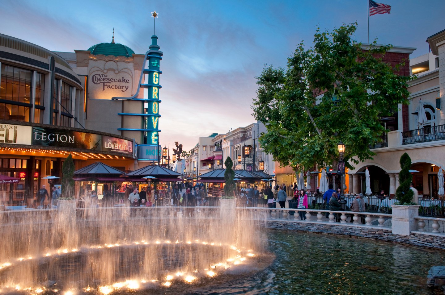 This 12-year-old mall is fully leased and in many ways shows how a development can be current, even cutting edge, by tapping the history around it: The Grove's layout was designed around the iconic Grove Trolley. And its 14-screen movie theater, a top venue on a per-screen revenue basis, is an art deco-influenced building, and staffed by ushers wearing classic pillbox hats harkening to nearby Hollywood's heyday. The 600,000 square-foot mall's stores vary from the very high-end Barneys New York to Gap (GPS), as well as a flagship for hot British fashion brand Topshop Topman.