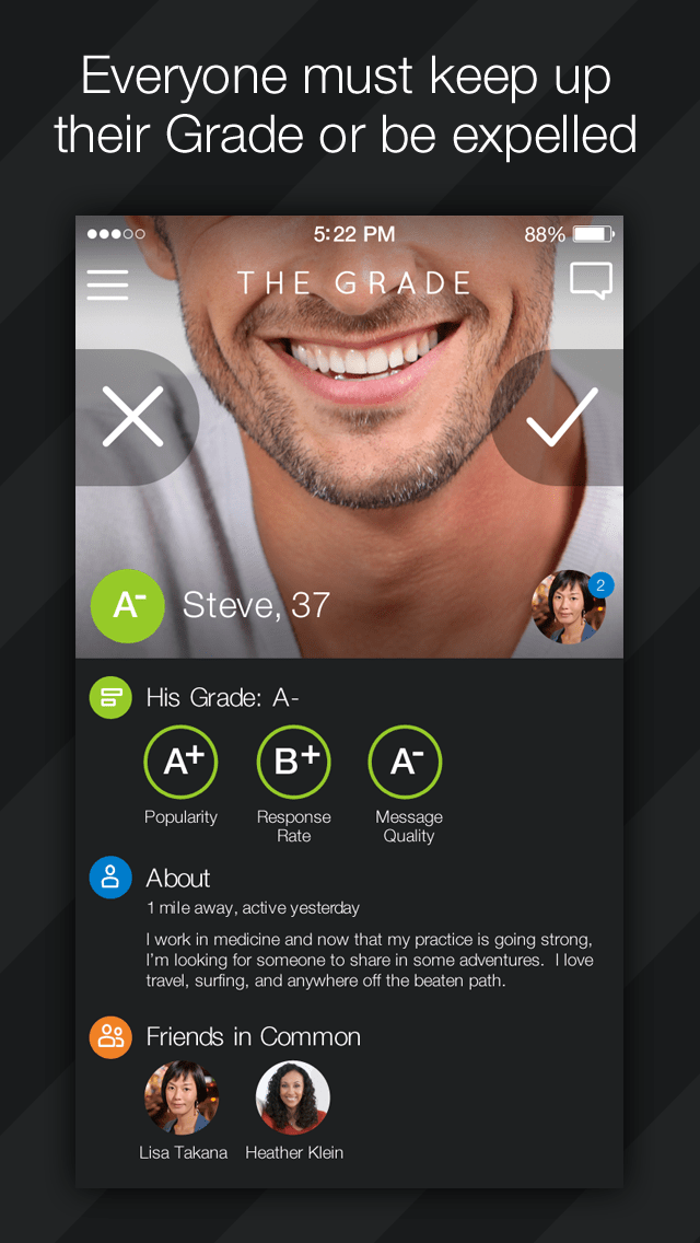 “We want to hold users accountable for their behavior,” says Cliff Lerner, CEO of SNAP Interactive, which created The Grade. “We believe the next big thing in online dating is accountability.”