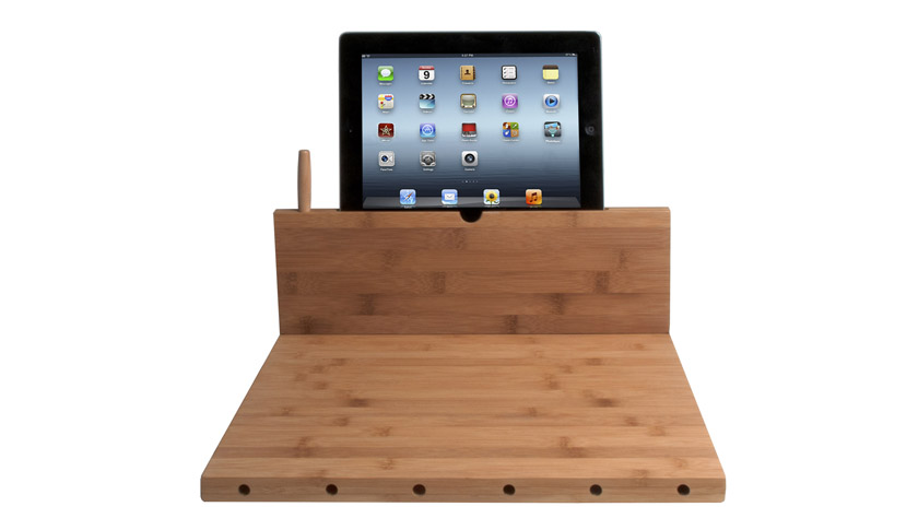Don’t you just hate it when you have to decide between chopping onions or playing Minecraft? Well, the good people at CTA Digital have addressed this Sophie’s Choice with their Bamboo Cutting Board with Stand for iPad and Knife Storage.