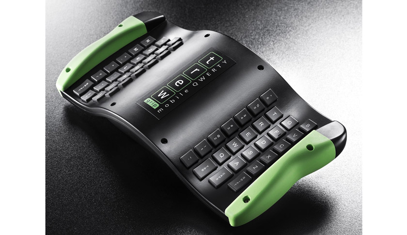 According to its website, TREWGrip “is a handheld ‘rear-type’ keyboard... The standard QWERTY key layout is split and rotated so the hands gripping TREWGrip can effectively touch-type in a mobile setting.” In other words, it’s a keyboard that’s flipped over, split in half and held like an accordion.