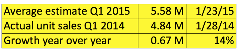 We’ll find out who was closest to the mark when Apple reports its fiscal Q1 2015 earnings after the markets close on Tuesday Jan. 27.