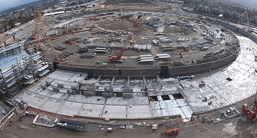 Drone videos of the progress being made on Apple’s new Pentagon-size headquarters building — the one Steve Jobs described as looking like a spaceship had landed — have come a long way in the past six months.