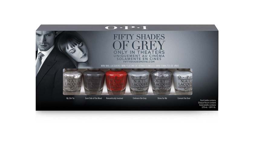 Macy’s (M) has heard these long-suffering individuals’ call, and offers the OPI “Fifty Shades of Grey” Mini Pack. This $21.95 gift pack contains six different lacquers from OPI Products, including “My Silk Tie” (“This silky, gleaming silver has got me all tied up”) and “Cement the Deal” (“I'd sign anything to get my hands on this stony, cool gray”).