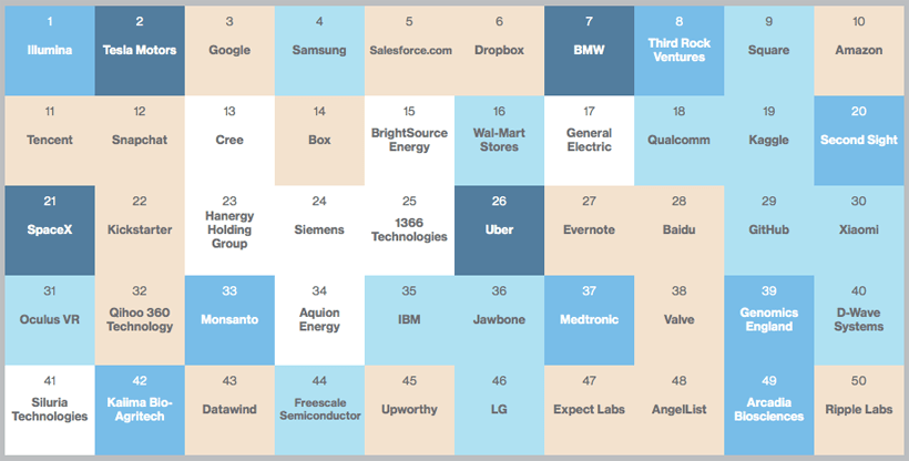 Using that definition, Apple and Facebook didn’t make the cut. “Reputation doesn’t matter,” to MIT’s editors. “We’re highlighting where important innovations are happening right now.”