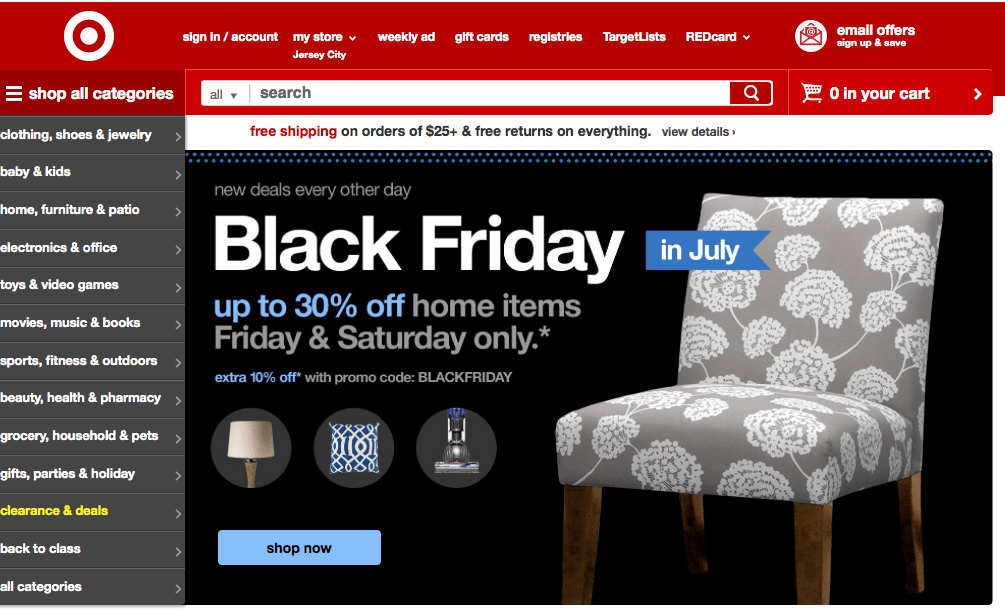 Others are doing similar things, not just in July but throughout the year. J.C. Penney’s (JCP) weekly circulars regularly tout “door busters,” a term that connotes the madness of the major discounts aimed at getting shoppers in stores for Black Friday sales. Penney starting using that term more aggressively outside of the holiday season in 2013 when it was desperately trying to stop a sales bleed.