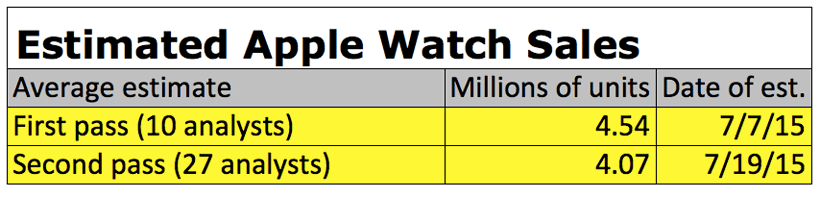 Two weeks ago, 10 analysts estimated that Apple sold 4.5 million Watches by June 27, when Apple wrapped up its third fiscal quarter.