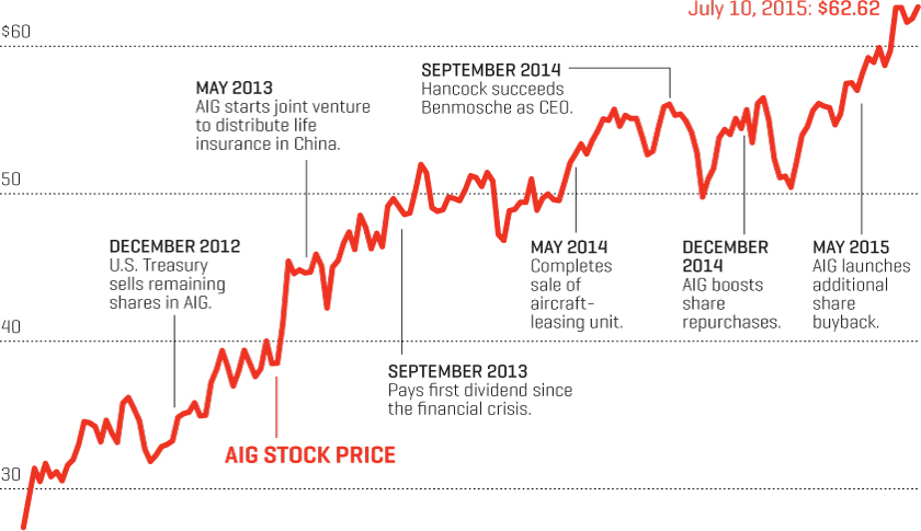 Under Benmosche and new CEO Peter Hancock, AIG has upgraded its technology infrastructure, Roth says, helping the company more accurately price its policies and cross-sell products. Last fall, shortly after assuming AIG’s helm, Hancock appointed the company’s first chief information officer. Roth says the tech overhaul has weighed a bit on AIG’s sales in recent years—its 2014 revenue, at $64.4 billion, was down about 6% from the previous year—but he thinks it will pay off in the long run.