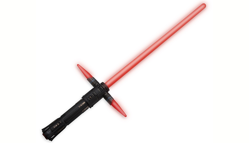 The Kylo Ren is the only lightsaber featured in the first trailer for Star Wars: The Force Awakens, and it's a configuration that has never been seen in the Star Wars world before. Wielded by the film's main mysterious villain, this version of the lightsaber retails for $30 and features the motion-sensor sounds that are standard on lightsabers produced by toy makers these days. The "real" Kylo Ren lightsaber has both fanboys and detractors, according to The Force Awakens director J.J. Abrams, who said he's received lots of positive and negative feedback.