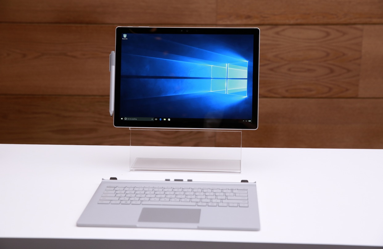 The Surface Book, a laptop-tablet hybrid, has a 13.5-inch touch display, 12 hours of battery life, an Intel Core i5 processor and 128GB of memory. The entry level version starts at $1,499 and the cost goes up to $2,699 for a version with a Core i7 processor and 512GB of space. For comparison, Apple’s 13-inch MacBook Pro starts at $1,299 and comes with 10 hours of battery life, an Intel Core i7 process and up to 1TB flash storage.