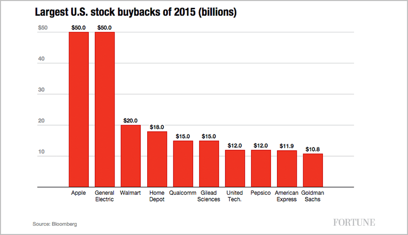 Still, shares of Apple (AAPL) and General Electric (GE), the two U.S. Companies that have bought back the most stock this year, are both up, 8% and 14%, respectively, this year.