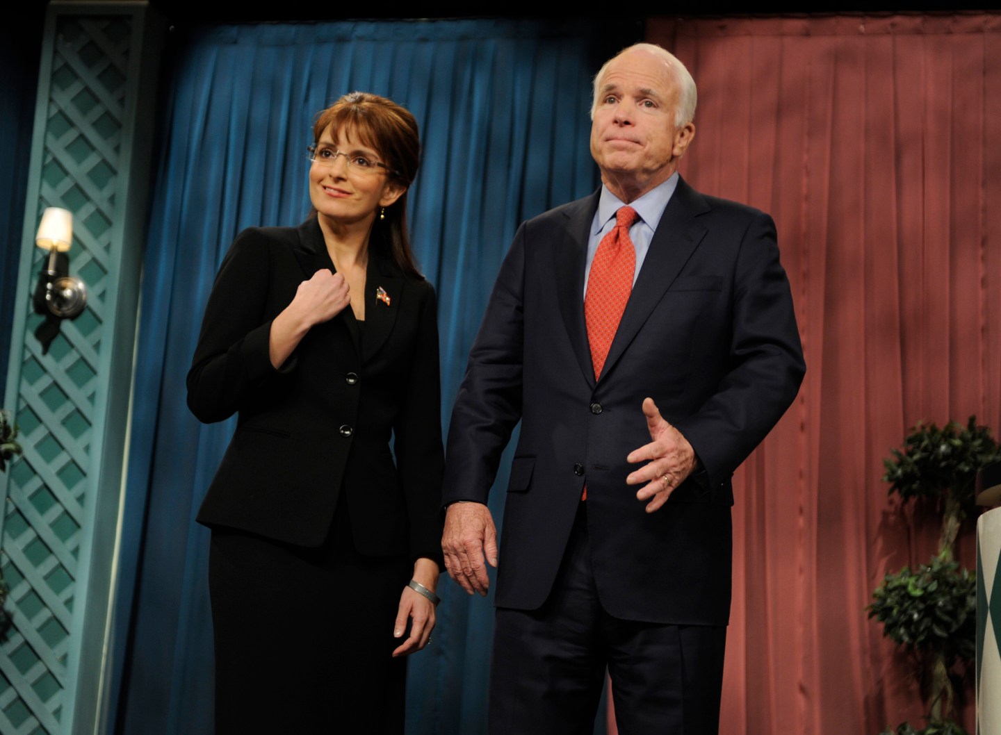 John McCain hosted the show in 2002 as a member of the Senate after previously losing to George W. Bush in the 2000 Republican primary. He then appeared on the show in November, 2008, just days before losing to Obama in the general election. In the show’s cold open skit, McCain and Tina Fey (portraying running mate Sarah Palin) pretended to sell items from his presidential campaign on QVC while joking about the campaign running out of money. "I'm a true maverick," McCain said. "A Republican without money."