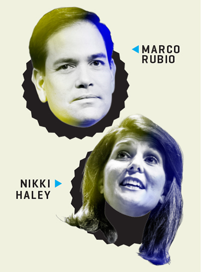 Florida Sen. Marco Rubio, an unrivaled communicator within his party who deftly straddles its warring wings, will emerge from the GOP presidential scrum as the nominee. Doubling down on the “youthful D.C. Outsider” contrast he intends to press against Clinton, Rubio will tap South Carolina Gov. Nikki Haley, 43, as his running mate. The fellow second-generation American from the Sun Belt, now in her second term, maintains solid approval numbers at home. More importantly, her handling of the state’s Confederate flag controversy expanded her support among constituencies — including African-Americans and self-identified Democrats — who’ll be key to any Republican victory.