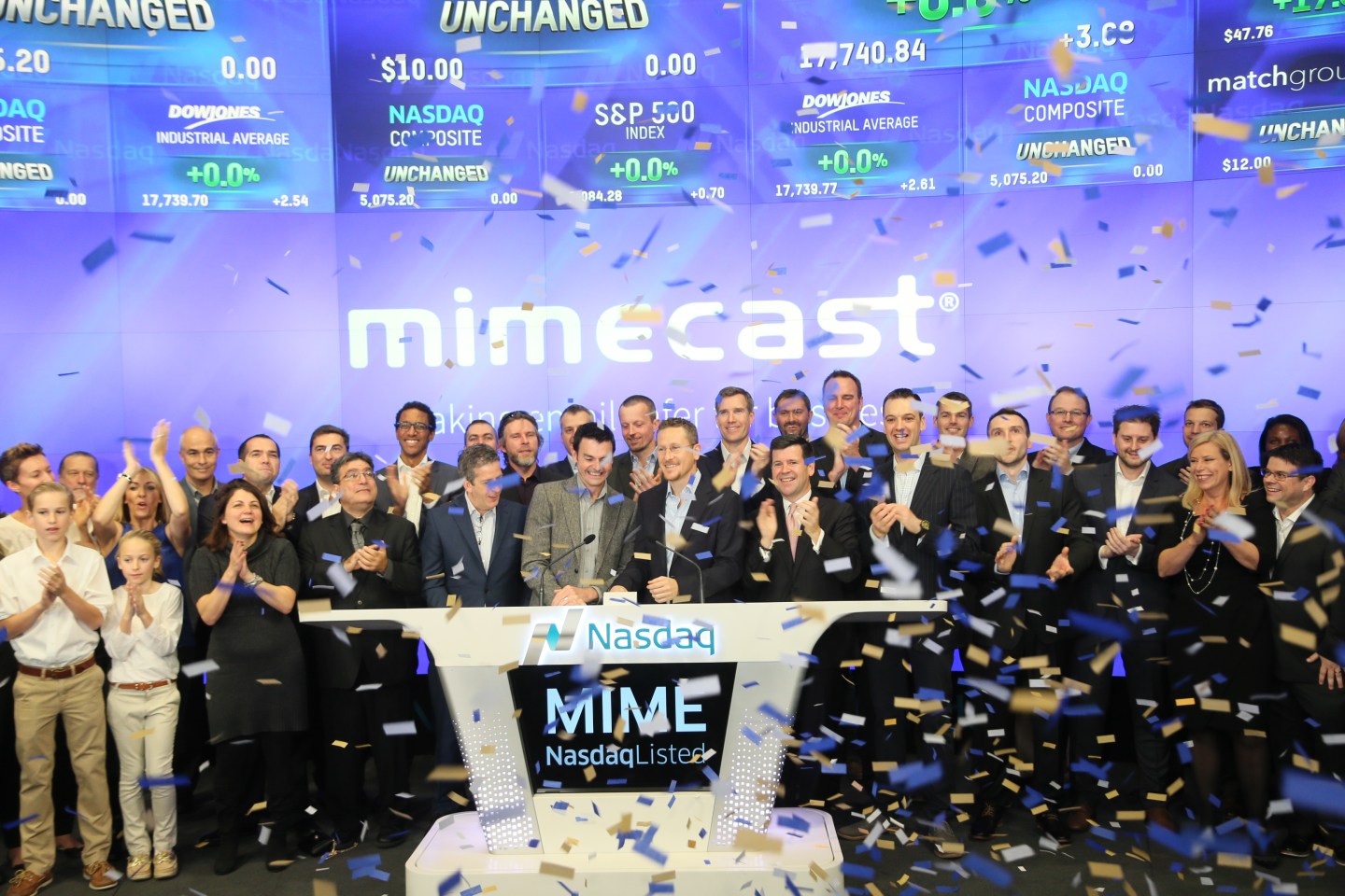 The name’s Mimecast (MIME), a cloud-based email management and security company that is headquartered in London. The firm’s stock debuted on NASDAQ on Thursday, pricing its 7.8 million shares at $10 each—the low end of an expected range that extended to $12.