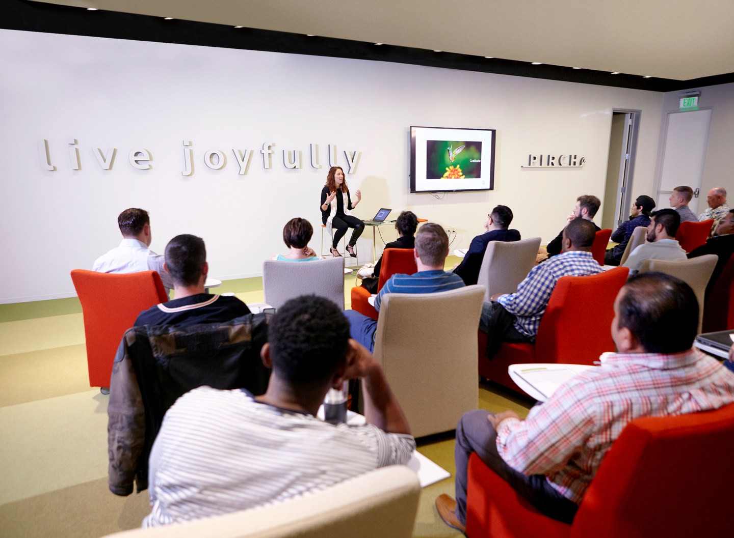 The process is led by Mark Tomaszewicz, Pirch’s “ambassador of joy” (who’s also in charge of human resources). It explores the company’s 23 “elements of joy” and how those principles should guide actions. “We give permission for people to act differently than in other workplaces,” Tomaszewicz says. “We teach empathy as a business model, whether it’s talking with a colleague or a customer.”