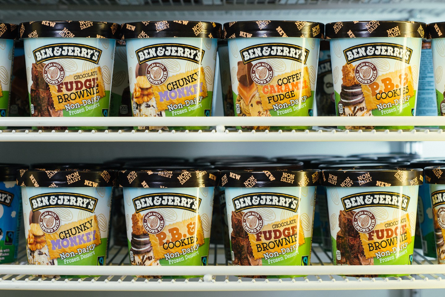 The ice cream maker announced Wednesday that it has started offering vegan varieties in four flavors—Chocolate Fudge Brownie, Chunky Monkey, P.B. & Cookies, and Coffee Caramel Fudge. The first two are Ben & Jerry’s classics, and the last two have been made special for those who don’t eat dairy.