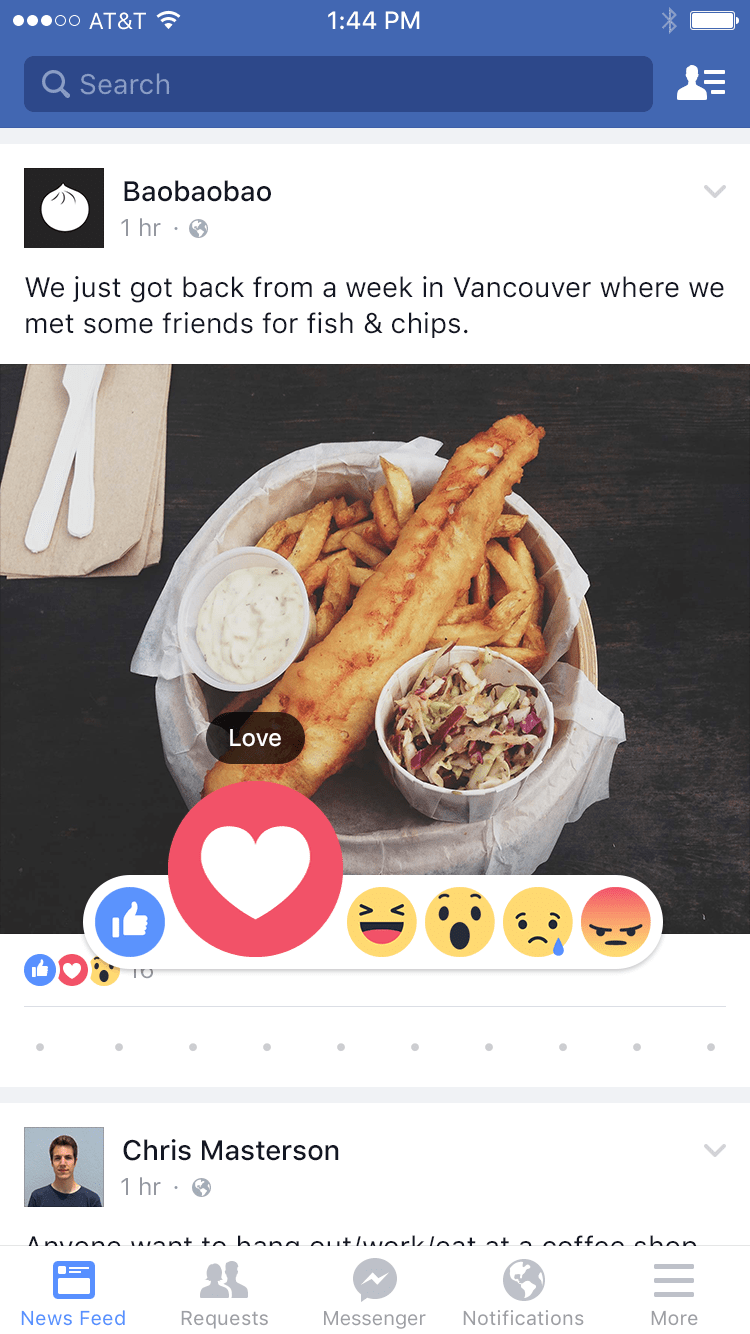 The network, with 1.6 billion users, on Wednesday rolled out its new “Reactions” button, which expands the range of emotional responses far beyond the “thumbs up” known as “like.” Facial expressions tagged “love,” “haha,” “sad,” “angry” and “wow” now can be used to respond to a post.