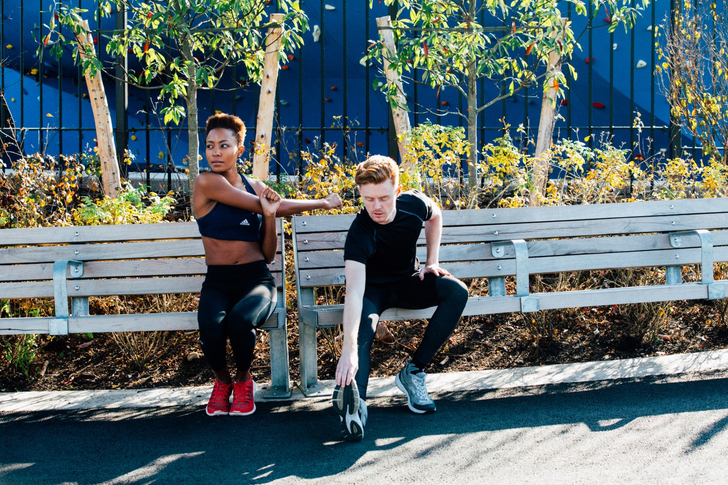 Next up: Mountain climbers. Bracing ourselves on a bench, we pistoned our legs as if we were trying to push the bench forward in 30-second intervals. By this point, I was unquestionably feeling the burn. I was, however, pleased to see Smart had broken a sweat finally as well—though that could have been pity on his behalf.