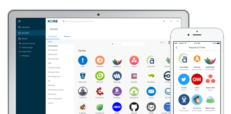 Kore has been working on its platform, which includes powerful encryption technology designed with corporate compliance rules, for almost two years. The company is encouraging businesses to share the bots they develop in a marketplace available registered users. “It’s much easier and the value realization in clearer than creating a typical application,” Koneru says.