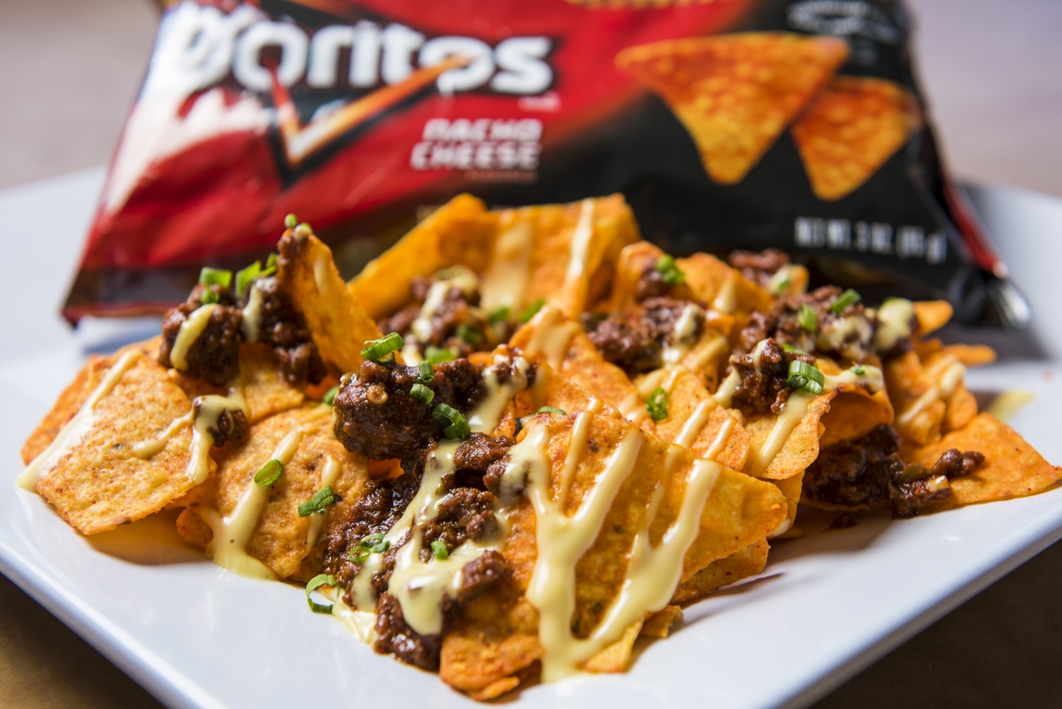 This $9 repast features either Fritos topped with chili and cheese sauce or Doritos topped with pulled pork, pulled chicken, and cheese sauce.