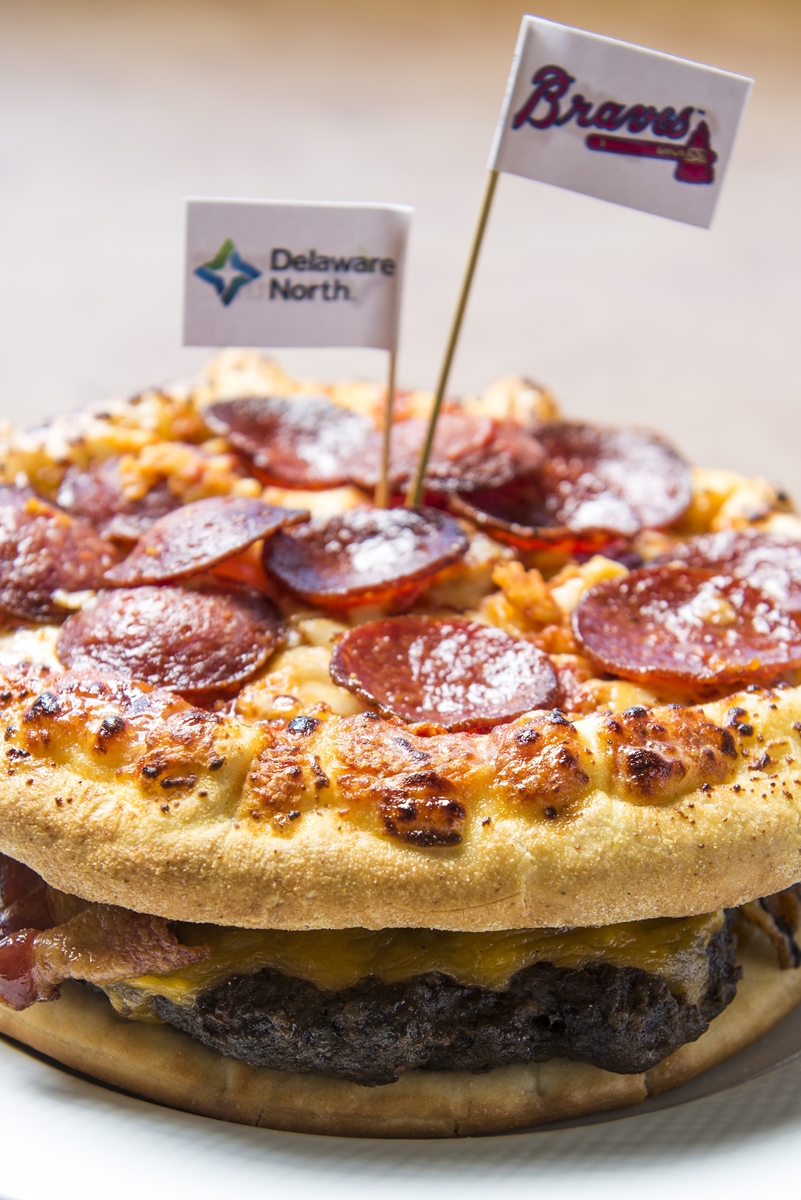 The MVP of baseball stadium stunt foods has to be the Braves. They’ve outdone themselves this year, starting with this 20-ounce, $26 burger that has two 8-inch pepperoni pizzas as the bun.