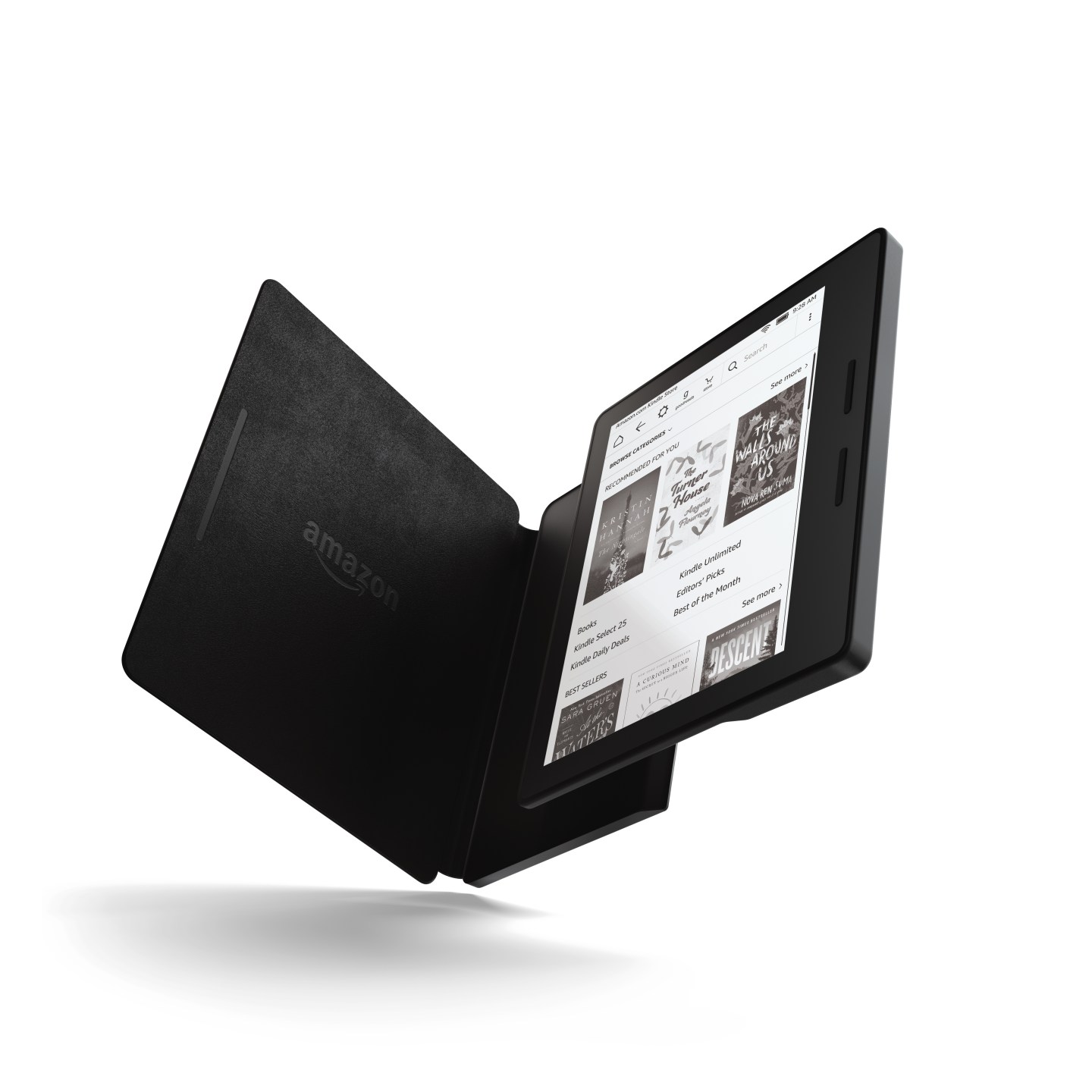 The Oasis is debuting with an unusual addition for extending the battery life. It comes with a protective cover that recharges the device automatically after being connected. The cover has a battery inside that can provide months of extra battery life to the Kindle.