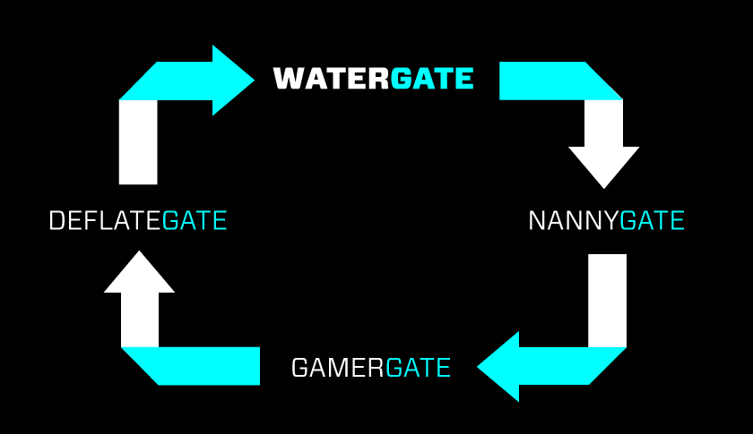 Adding “-gate” to the name of every scandal, and some not-so-scandalous events, to lend it overtones of Richard Nixon-esque wrongdoing has been a time-honored tradition for more than 40 years. From Nannygate to Nipplegate, we’ve slapped the suffix on just about any and every dustup that commands the public’s attention. Now, though, there’s clear evidence the construction has reached its apex and natural conclusion—another Watergate.