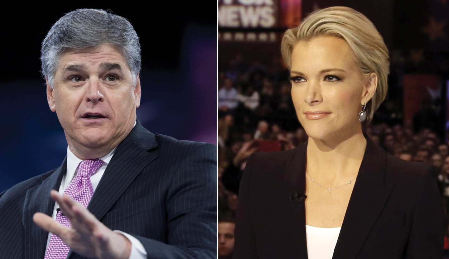 Tensions had reportedly been boiling behind the scenes between Kelly and Hannity. After last week’s first presidential debate, Kelly made a sly dig at Hannity, suggesting he isn’t a journalist (which is something Hannity has actually said of himself). When Hannity appeared on camera with Trump following the debate, she said on air, “We’ve got Trump speaking to our own Sean Hannity. We’ll see whether he speaks to the journalists in this room after that interview.”