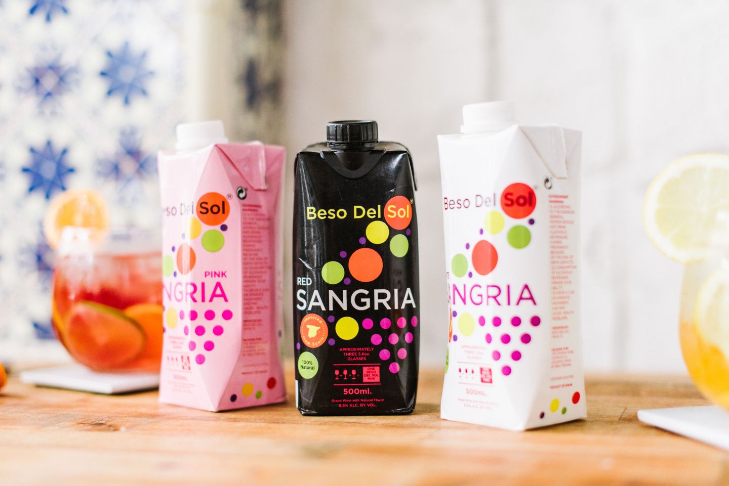 The Wine Group’s Beso Del Sol brand features a pink sangria to target the rosé crowd and offers diverse packaging in the form of glass bottles, boxes, and portable Tetra Paks.