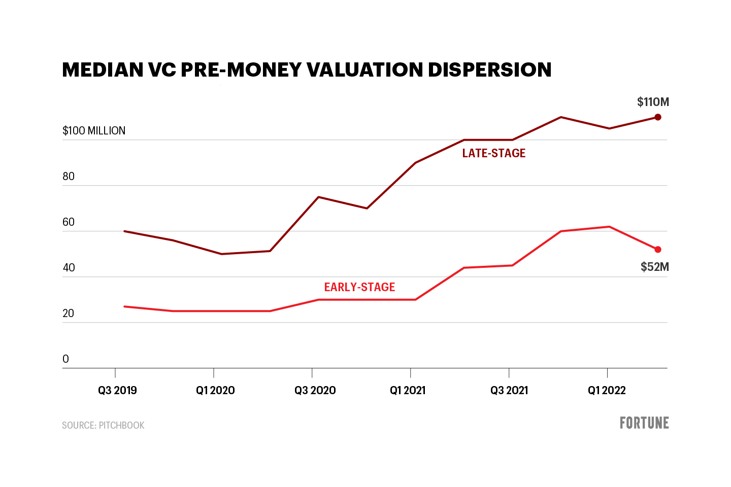 Yet while valuations may be falling in the early-stage category, deal values are increasing. The early-stage median deal size in the second quarter of 2022 was $11.9 million—a 19% increase from the $10 million median deal size in this year’s first quarter. Why are these metrics going in different directions? “One of the primary reasons early-stage VC deal sizes are going up is the need to maintain sufficient runway to weather the current economic downturn,” Navas said. Raising more capital now means avoiding the possibility of reentering an even harsher fundraising climate if market conditions worsen.