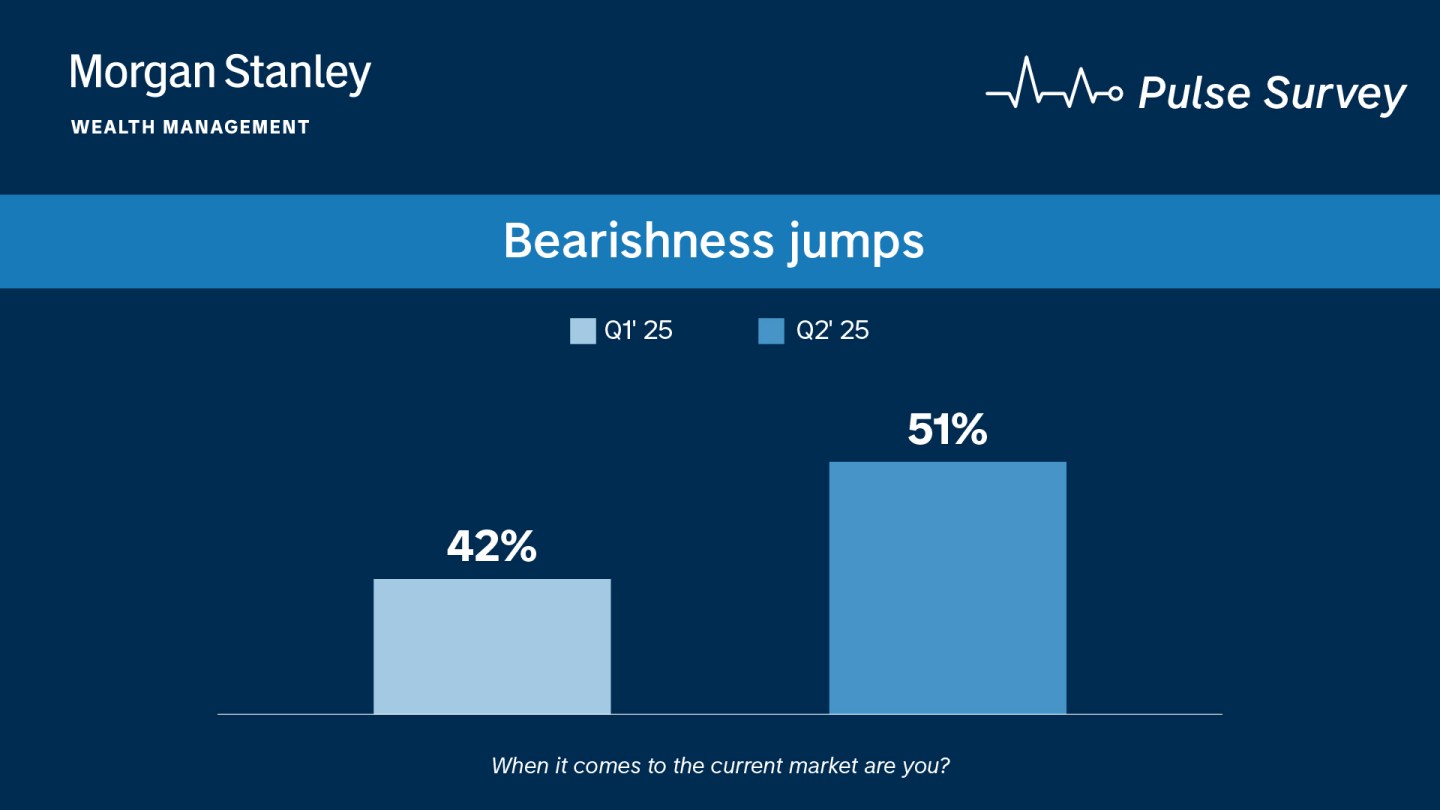 Morgan Stanley Wealth Management has released the results of its quarterly retail investor pulse survey of 912 self-directed investors conducted from April 1 to April 14. The majority (51%) of investors are now bearish—up 9 percentage points from last quarter. More than two out of five (41%) investors say inflation is their top portfolio concern, followed by tariffs (35%), and market volatility (24%).