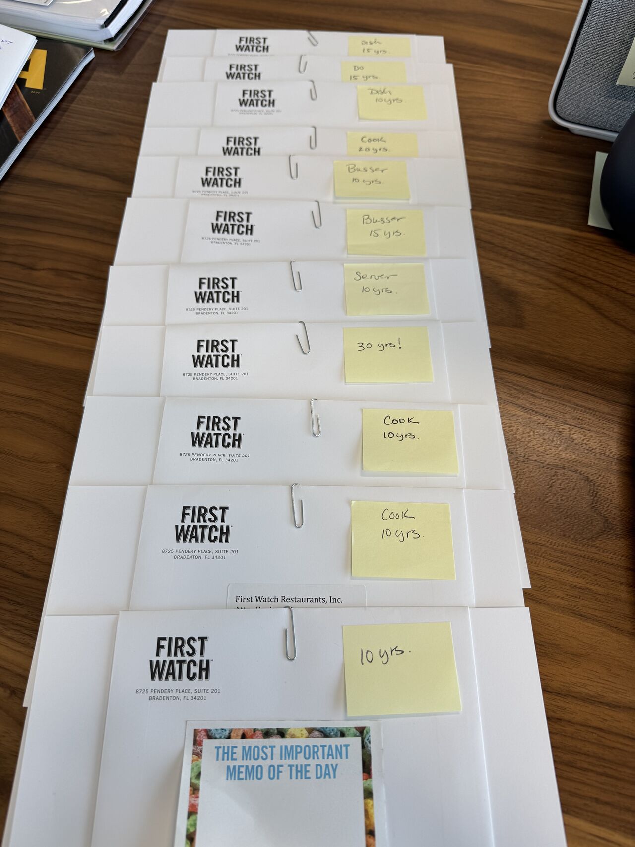 But for First Watch CEO Chris Tomasso, old-fashioned notes of appreciation are a ritual.