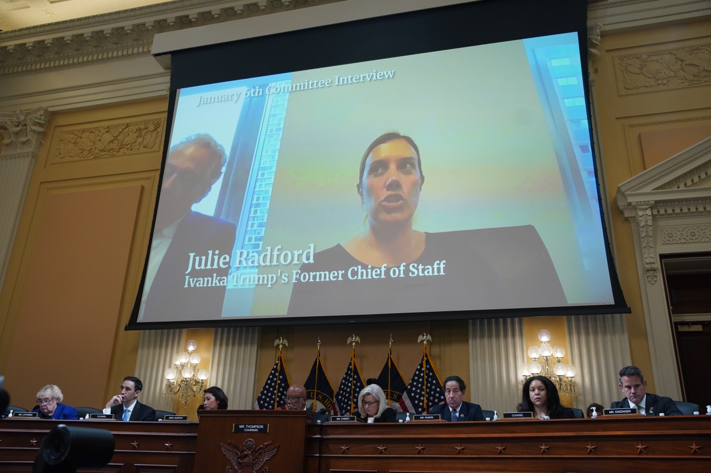 Radford was interviewed for the U.S. House select committee’s investigation into the Jan. 6, 2021, insurrection, and the committee released text messages sent the day of the attack between Radford and Trump aide Hope Hicks lamenting their job prospects as a result of Trump’s response.