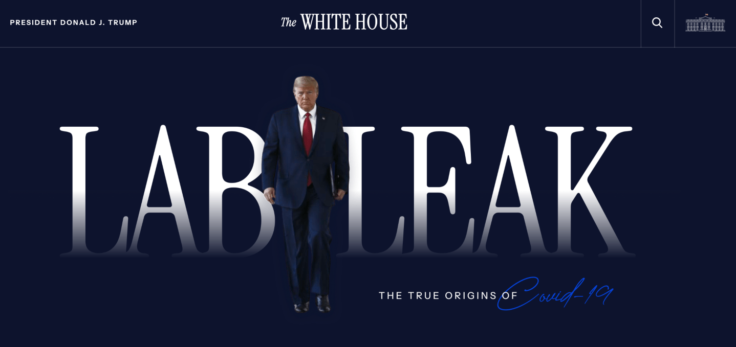 Now it’s headlined with the words “Lab Leak” and features a satellite image of Wuhan, the city where COVID began spreading. The website claims to describe the “true origins of COVID-19.”