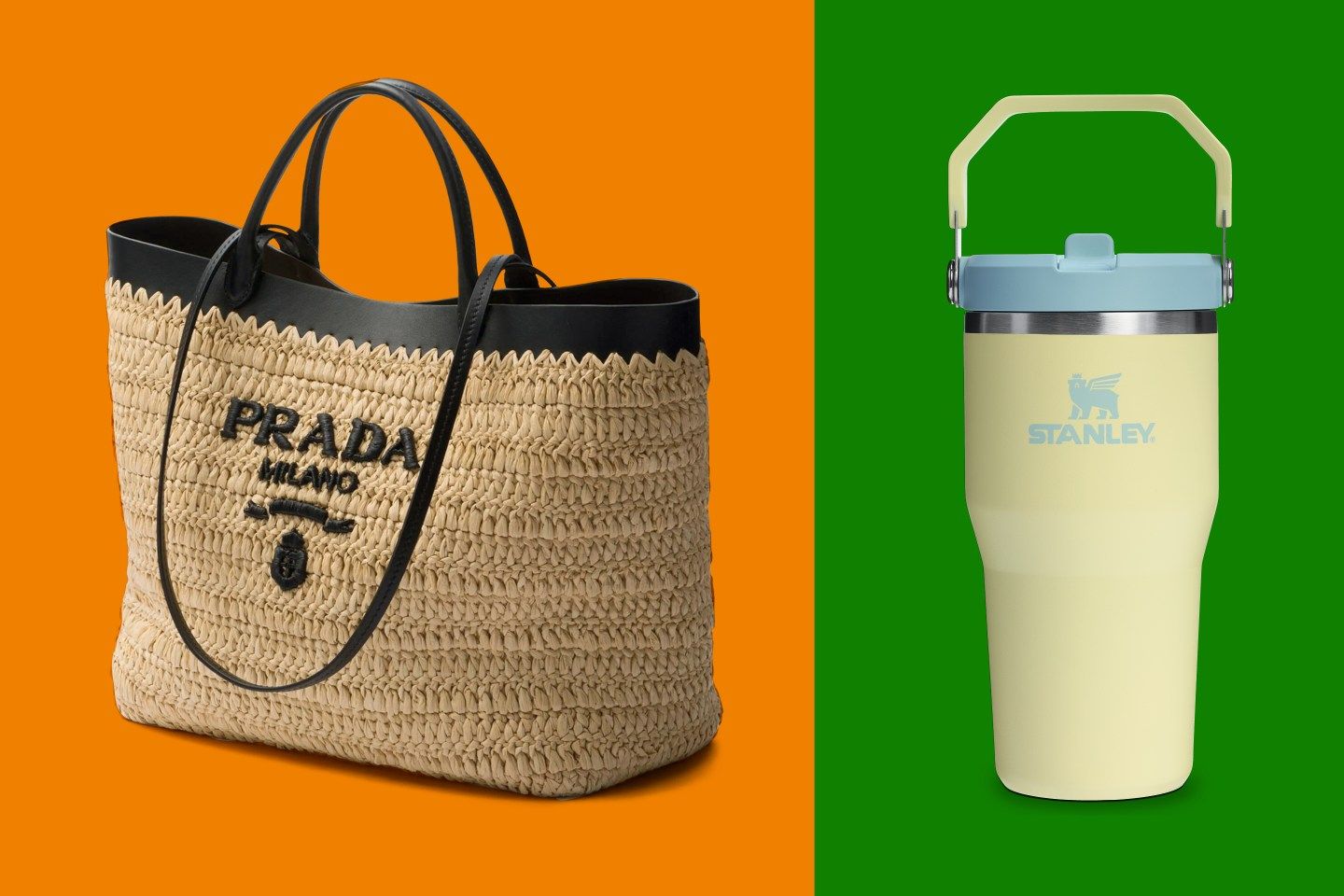 PRADA LEATHER-TRIMMED WOVEN TOTE BAG Minimal yet an essential for your summer wardrobe; $2,250