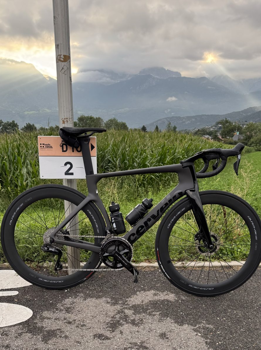 A Cervelo S5 with full Shimano Dura-Ace Di2 and C60 Wheelset. I bought it after a challenging first year at Salomon.